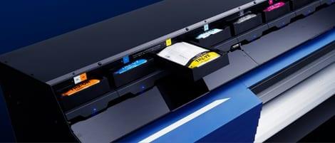 Specially formulated, fast-drying eco-solvent inks. Retaining the striking, vibrant colours Roland users have come to know and love, the reimagined new GREENGUARD Gold certified TrueVIS INK system incorporates cost-effective 500ml ink pouches that fit neatly into the printer’s reusable cartridge casings. The cartridges are then slid into a discreet, hidden ink bay at the front of the printer body, granting ease of access and cleaner usage with less waste.