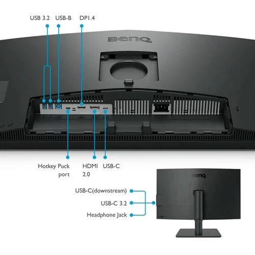 The BenQ SW242Q offers versatile connectivity options including 1x v2.0 HDMI, 1x v1.4 DisplayPort. The integrated USB hub provides 2 USB-A downstream ports and 1.0 USB-C downstream ports for connecting peripherals.