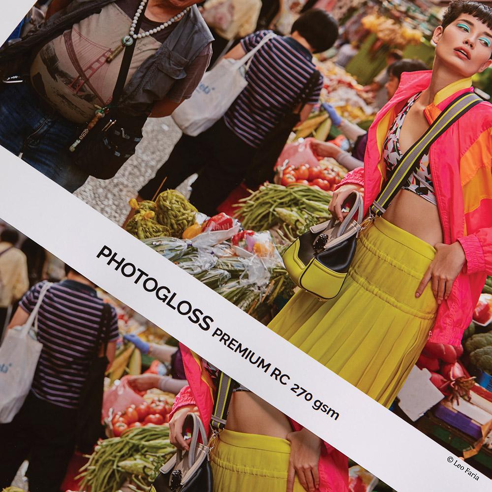 PhotoGloss Premium RC delivers exceptional photographic quality with a high-gloss finish. This 270gsm RC paper provides vibrant colors and sharp detail reproduction for professional photography applications.