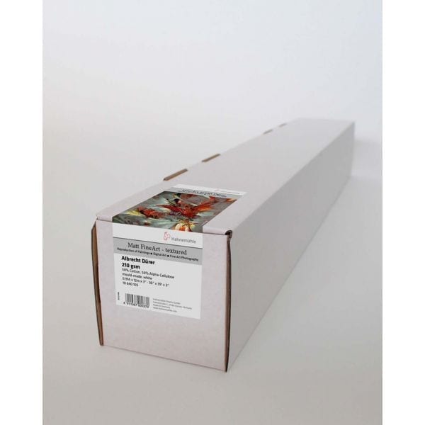 Albrecht Dürer 210gsm blends 50% cotton with 50% α‑cellulose on a mould‑made base, finished with a premium matt inkjet coating.